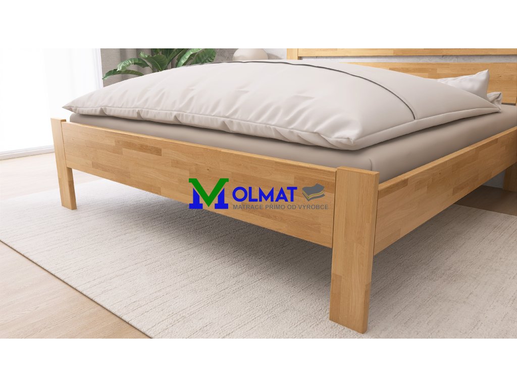 Velkou výhodou je možnost polohování výšky uložení roštu, díky které si můžete přizpůsobit výšku lehací plochy podle typu matrace nebo vlastní preference. Postel je dodávána bez roštu a matrace. Povrch je ošetřen bezbarvým lakem, který zajišťuje vysokou odolnost proti poškození, snadnou údržbu a dlouhodobou barevnou stálost. Na přání je možné postel namořit do vybraného odstínu.