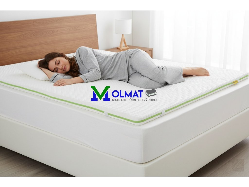 Vrchní matrace vyrobená z vysoce komfortní paměťové pěny (nebo také viscoelastické pěny / líné pěny) je vhodné řešení pro osoby, které požadují změkčení a zkvalitnění anatomických vlastností stávajícího lůžka.